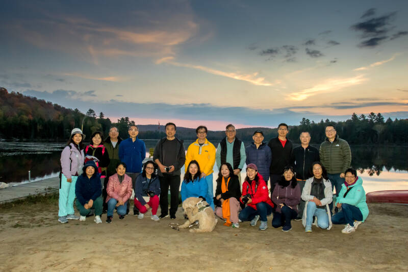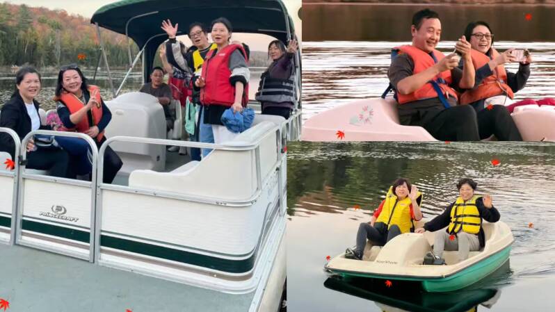 10月5日,我们在湖上划船,欣赏环绕湖泊的秋天景色以及它在水中的倒影。下午部分朋友享受在林间小路上,还有一些朋友去参观阿冈昆附近的瀑布。