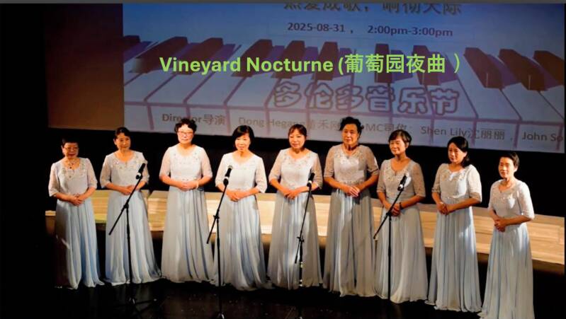 On August 31, 2025, Four-Seasons Arts Centre participated in 2025 Toronto Harmony Music Festival. Through the patience and professional guidance of prof. Dong Hegang and everyone's efforts over the past few months, we brought and performed 12 songs in five languages including SATB 4 choral songs, small groups’ SA, SSA and TB songs, duet and solo, they are “Under the Silver Moonlight”, “Joyful Naadam”, “Accent-Nostalgia”, “Gloria in Excelsis Deo” , ”Barcarolle”, “Vineyard Nocturne”, “Flower Duet”, “Over and Over”, “Panis Angelicus”, “Scarborough Fair”, “Core ’ngrato” and “Spring Dawn”.