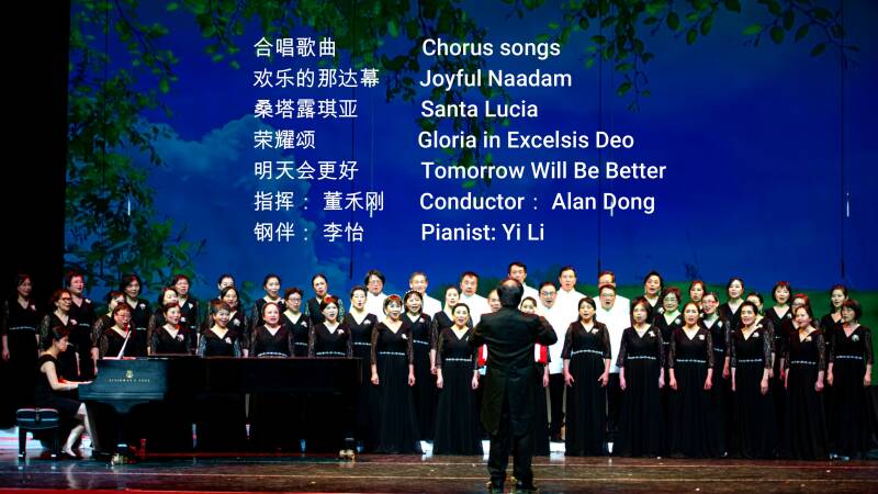 The event ‘s Artistic Director and Conductor was Prof. Dong Hegang, and the piano accompaniment was provided by Li Yi. The concert hosts are John Song, Lily Shen, Richard Ma.
